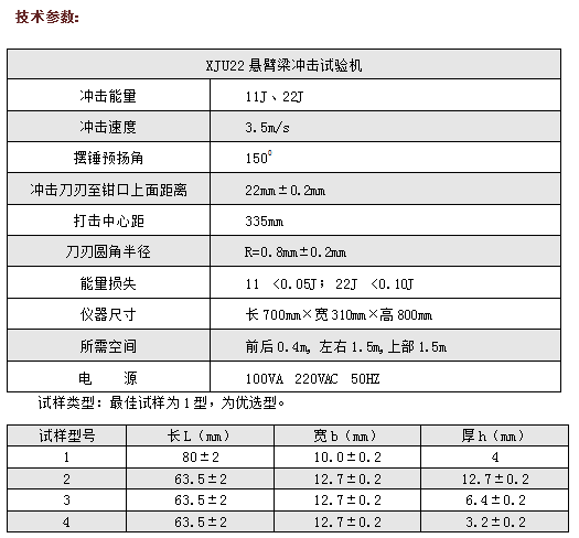 XJU-22懸臂梁沖擊試驗機儀器概述: